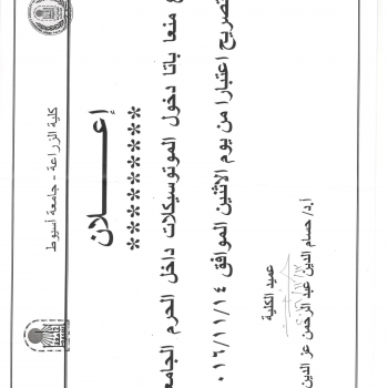 سوف يعقد بمشيئة الله تعالي اجتماع مجلس كلية الزراعة رقم ( 711) يوم الإثنين الموافق 21 / 11 / 2016م الساعة السابعة مساءاُ وذلك بمقر مجلس الكلية – الدور الرابع (المبني الإداري).