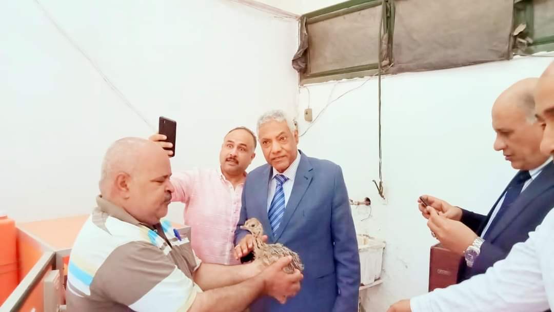 قام السيد الاستاذ الدكتور عادل محمد محمود عميد كلية الزراعه جامعه اسيوط والسيد الاستاذ الدكتور جلال عبد الفتاح الصغير وكيل الكليه لشؤون البيئه وخدمه المجتمع والسيد الاستاذ الدكتور عادل علي تمام وكيل الكليه لشؤون التعليم والطلاب والسيد الأستاذ الدكتور محمد فرغلي رئيس مجلس قسم انتاج الدواجن بمتابعه عملية اول عملية تفريخ لبيض النعام بمزرعه انتاج الدواجن