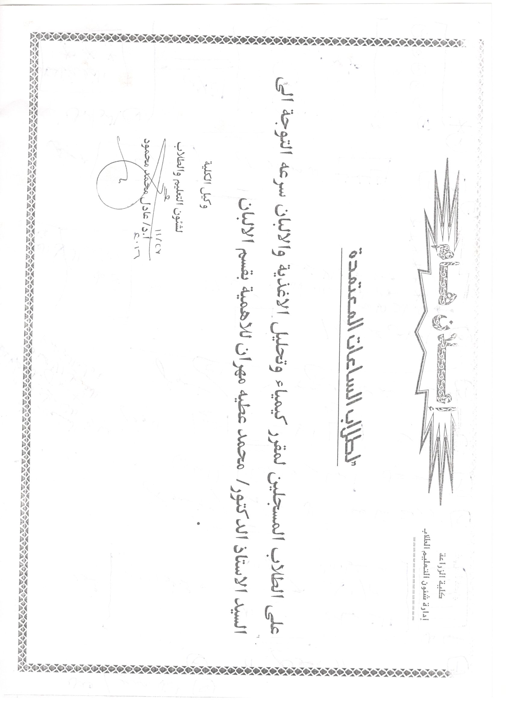 تهنئة السيد العميد للدكتورة / نسرين محمد فهمي ابوغدير