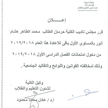تقرر عقد اجتماع مجلس الكلية لشهر ديسمبر 2018 فى تمام الساعة الحادية عشر يوم الاثنين الموافق 17/12/2018 بقاعة مجلس الكلية…