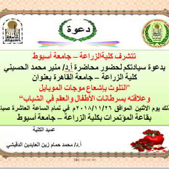 سوف يعقد بمشيئة الله تعالي أجتماع مجلس قسم الوراثة بكلية الزراعة يوم الأثنين الموافق 3/12/2018الساعة الحادية عشر صباحا…