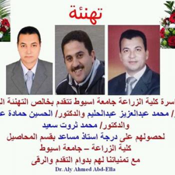 تهنئة باجمل التهانى مقدمة من أ.د/ حسام الدين عبد الرحمن عز الدين - عميد كلية الزراعة