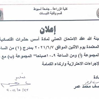 ينعي الاستاذ الد كتور / عادل محمد محمود عميد كلية الزراعة جامعة اسيوط بخالص الحزن والأسى المرحومة الدكتورة تهاني حسن اسماعيل شريف الاستاذ المتفرغ بقسم الوراثة بكلية الزراعة…