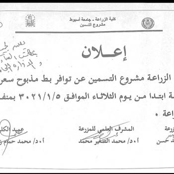 يتقدم السيد الاستاذ الدكتور / محمد حمام زين العابدين الدقيشي عميد كلية الزراعة جامعة أسيوط بخالص التهاني والتبريكات للسيد الدكتور / ممدوح عيسى لحصوله علي جائزة جامعة أسيوط التشجيعية في…