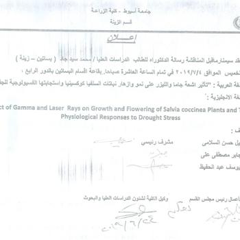 سوف يعقد بمشيئة الله تعالي أجتماع مجلس قسم وقاية النبات بكلية الزراعة يوم الأثنين الموافق 10/6/2019 الساعة  الحاديه عشر صباحا…