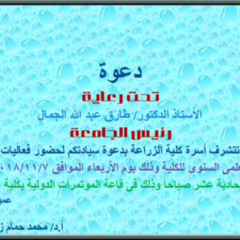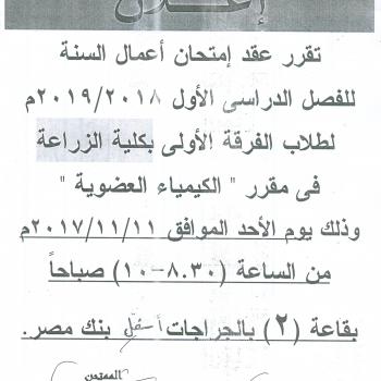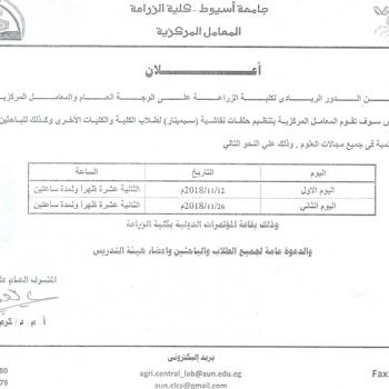 سوف يعقد بمشيئة الله تعالي أجتماع مجلس قسم أمراض النبات بكلية الزراعة يوم الاثنين الموافق 5/11/2018الساعة الحادية عشر صباحا…