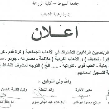 سوف يعقد بمشيئة الله تعالي أجتماع مجلس قسم أنتاج الدواجن بكلية الزراعة يوم الاثنين الموافق 2/10/2017الساعة العاشرة صباحا…