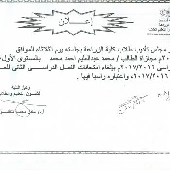 سيتم بمشيئة الله تعالى فحص ومناقشة رسالة الماجستير المقدمة من الطالب / أحمد سليمان دهب …