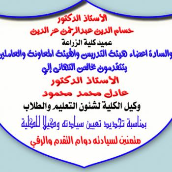 تهنئة من أ.د/حسام الدين عبدالرحمن عميد الكلية