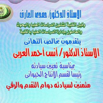 تهنئة وكيل الكلية لتعيين رئيس قسم الانتاج الحيوانى