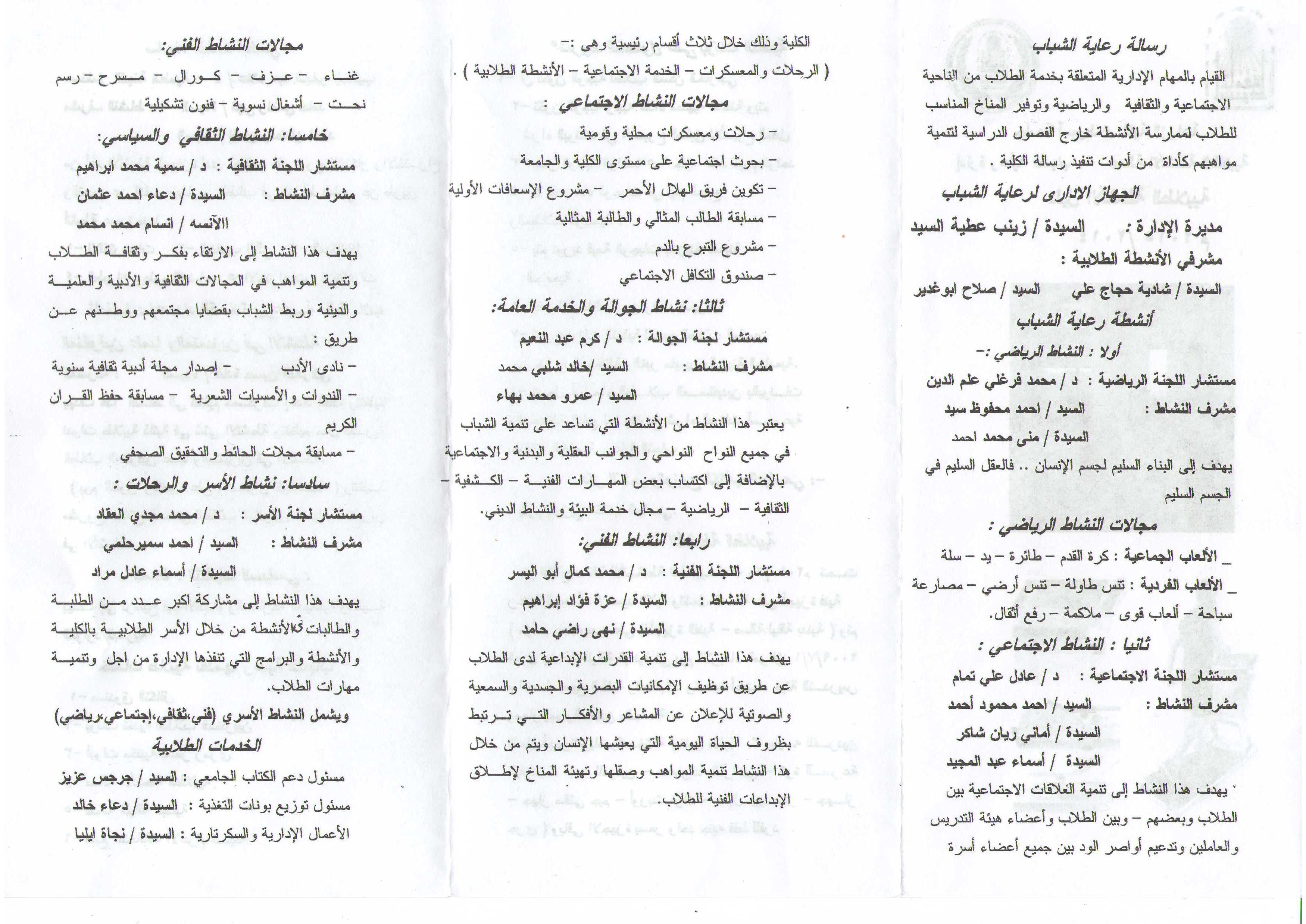رعاية الشباب بالكلية 2014