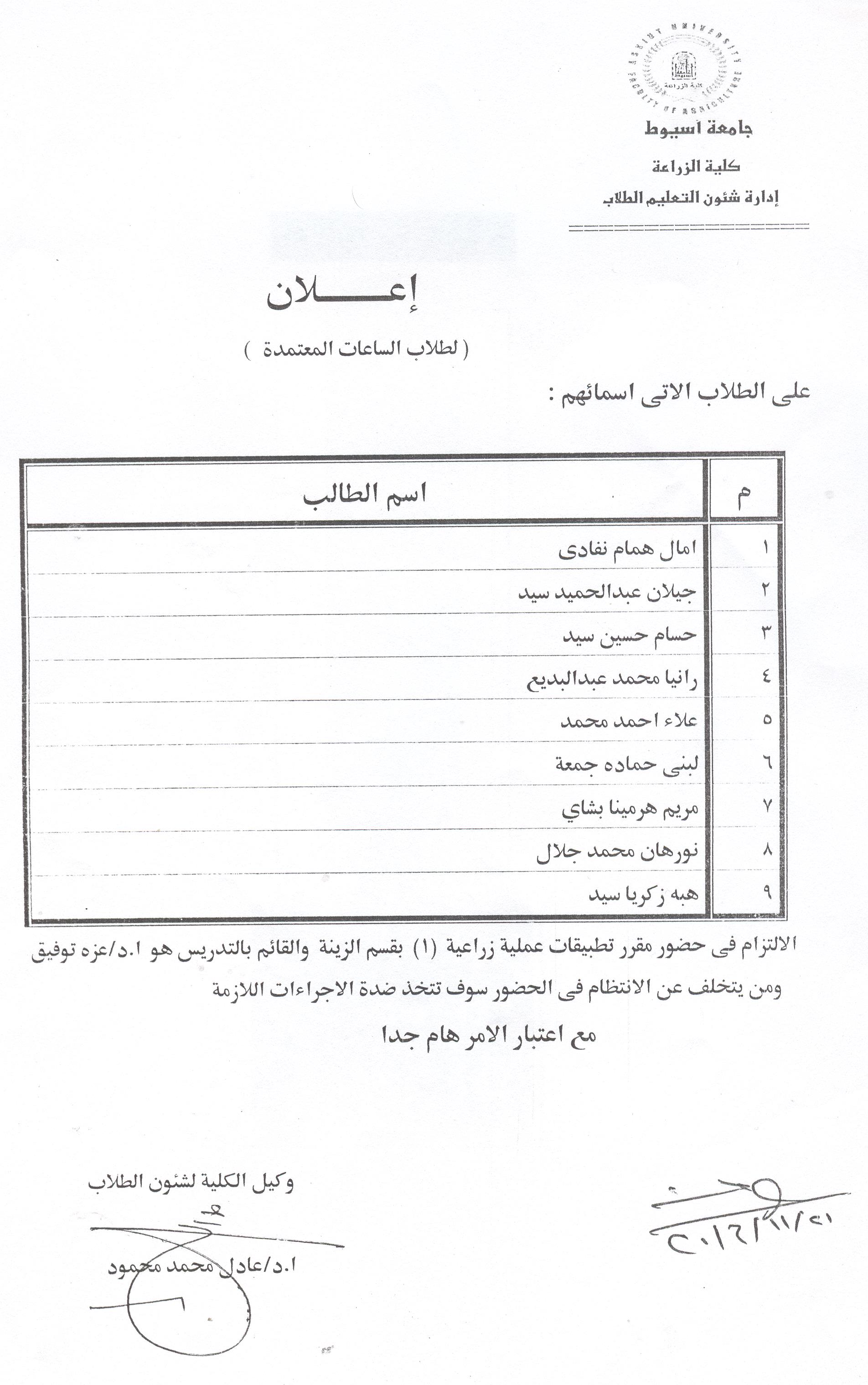 طلاب مطلوب حضورهم الى شئون الطلاب