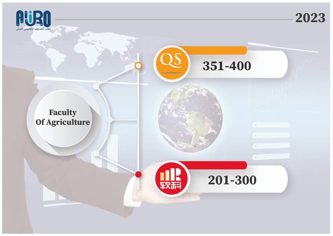 تم إدراج كلية الزراعة وفق تصنيف الإنجليزي QS لعام 2023 في المرتبة 351 - 400 علي المستوي العالمي.
