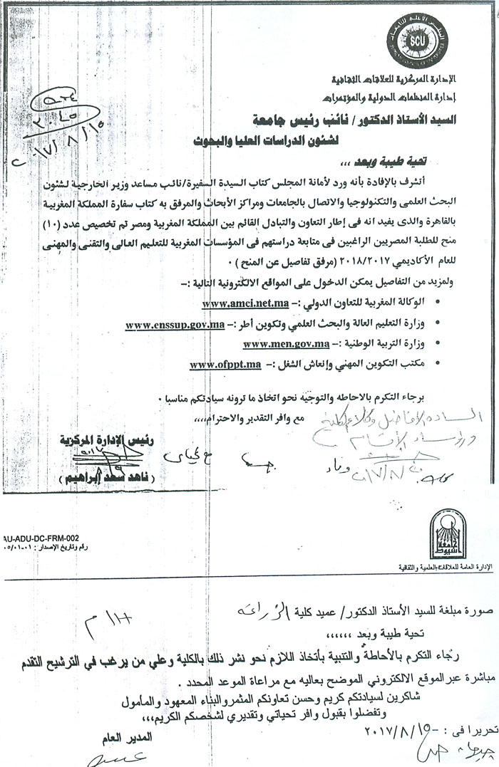 Grants to Egyptian students wishing to pursue their studies in Moroccan institutions of higher education
