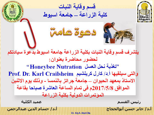 Invitation to attend a lecture entitled "Honeybee Nutration"