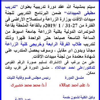 A monthly meeting the committee for community and environmental development will hold on Sunday 13/1/2019 at 12 PM in the office of Vice Dean for Community Services and Environmental…