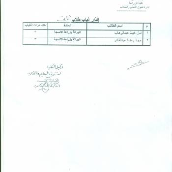 Second warning of the absence of students in genetics and tissue culture