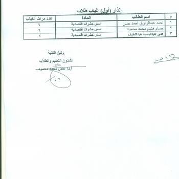 The first warning for the absence of students whose names are in the basis of economic insects