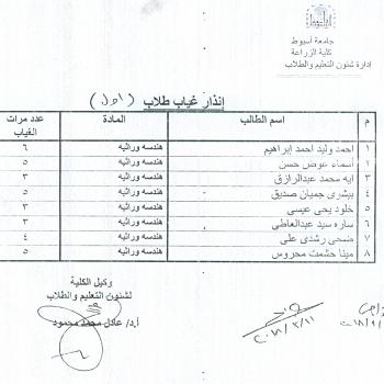The names of eligible students warning the absence of the first in the course of the genetics of trading and storage of private garden crops