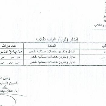 Warning of the first absence of students in the course (chemistry and analysis of food and dairy)