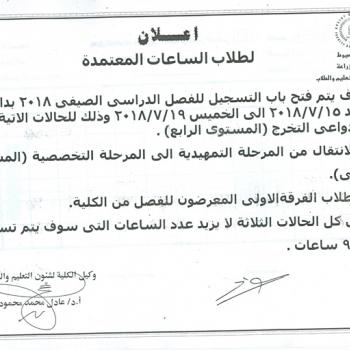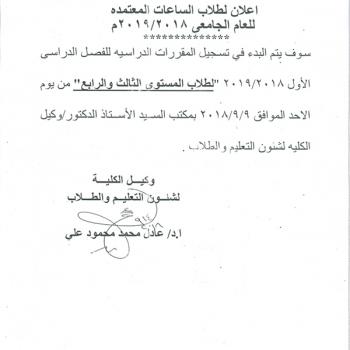 Announcement for students of accredited hours for the academic year 2019/2018 m