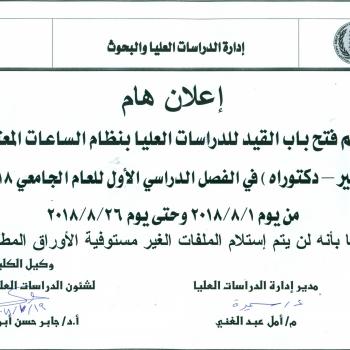 The opening of the registration for postgraduate studies for the year 2018/2019 the first semester