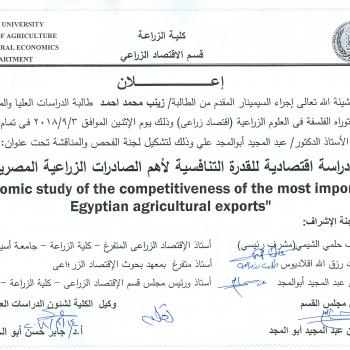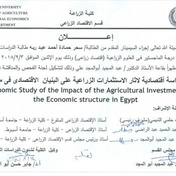 The appointment of Semnar student: Sahar Hamada Ahmed Abed Rabbo to form the Committee for examination and discussion