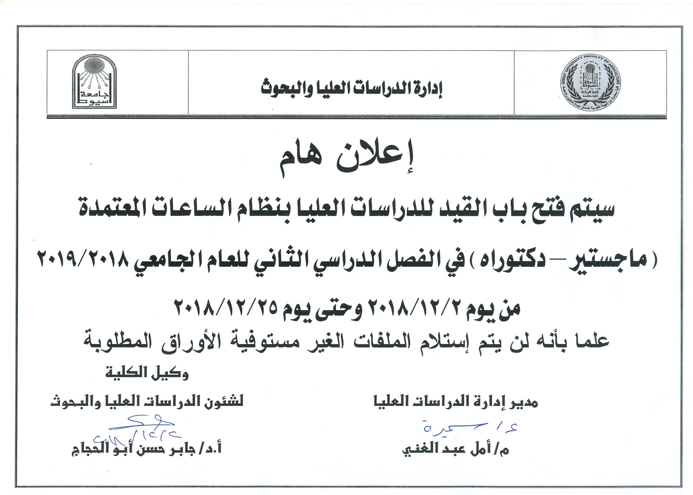 Open enrollment for graduate credit hours system in the second semester. 1 December 2018 Open enrollment for graduate credit hours system in the second semester.