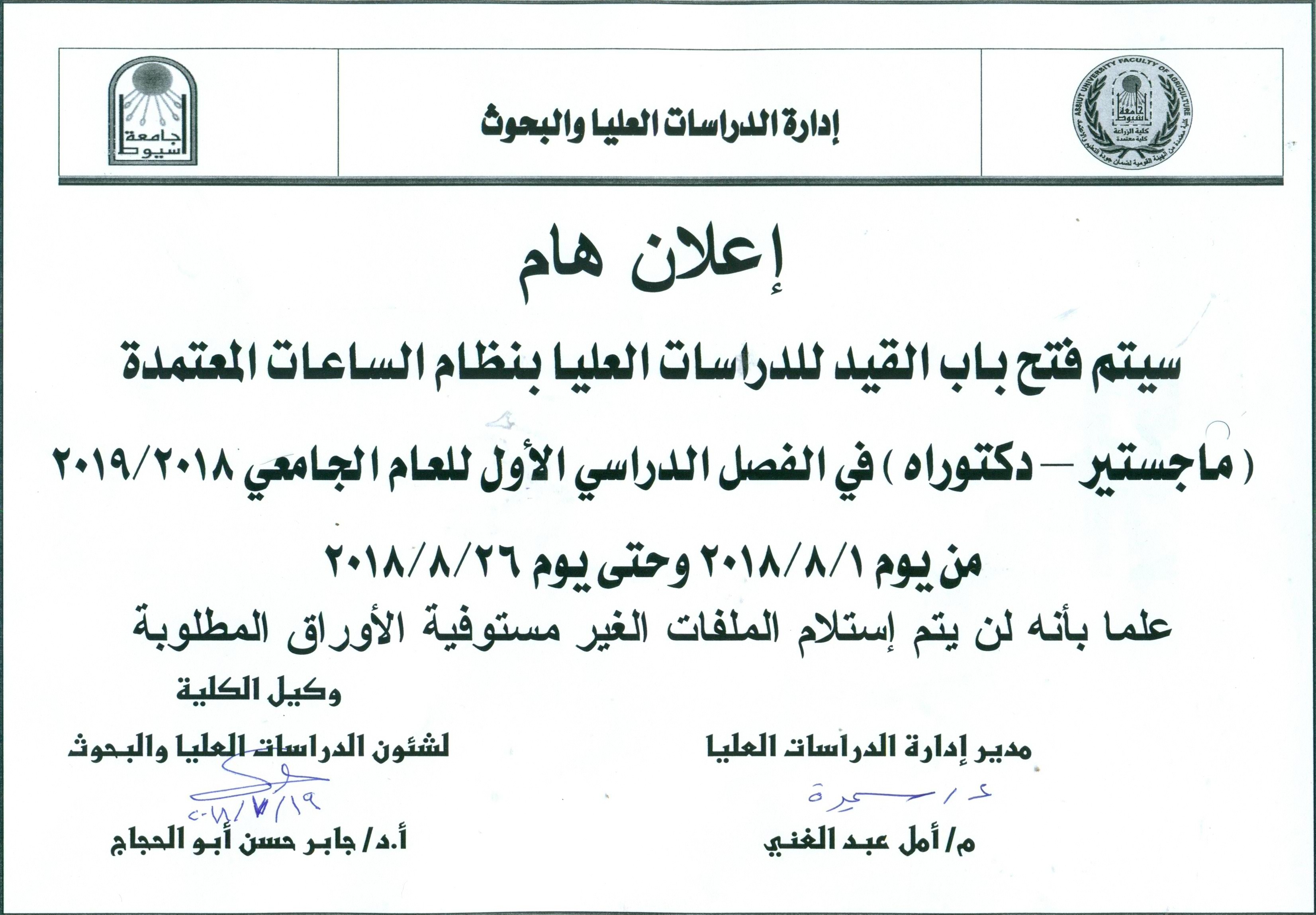 Opening of the postgraduate courses for the academic year 2018/2019 24 July 2018 Opening of the postgraduate courses for the academic year 2018/2019