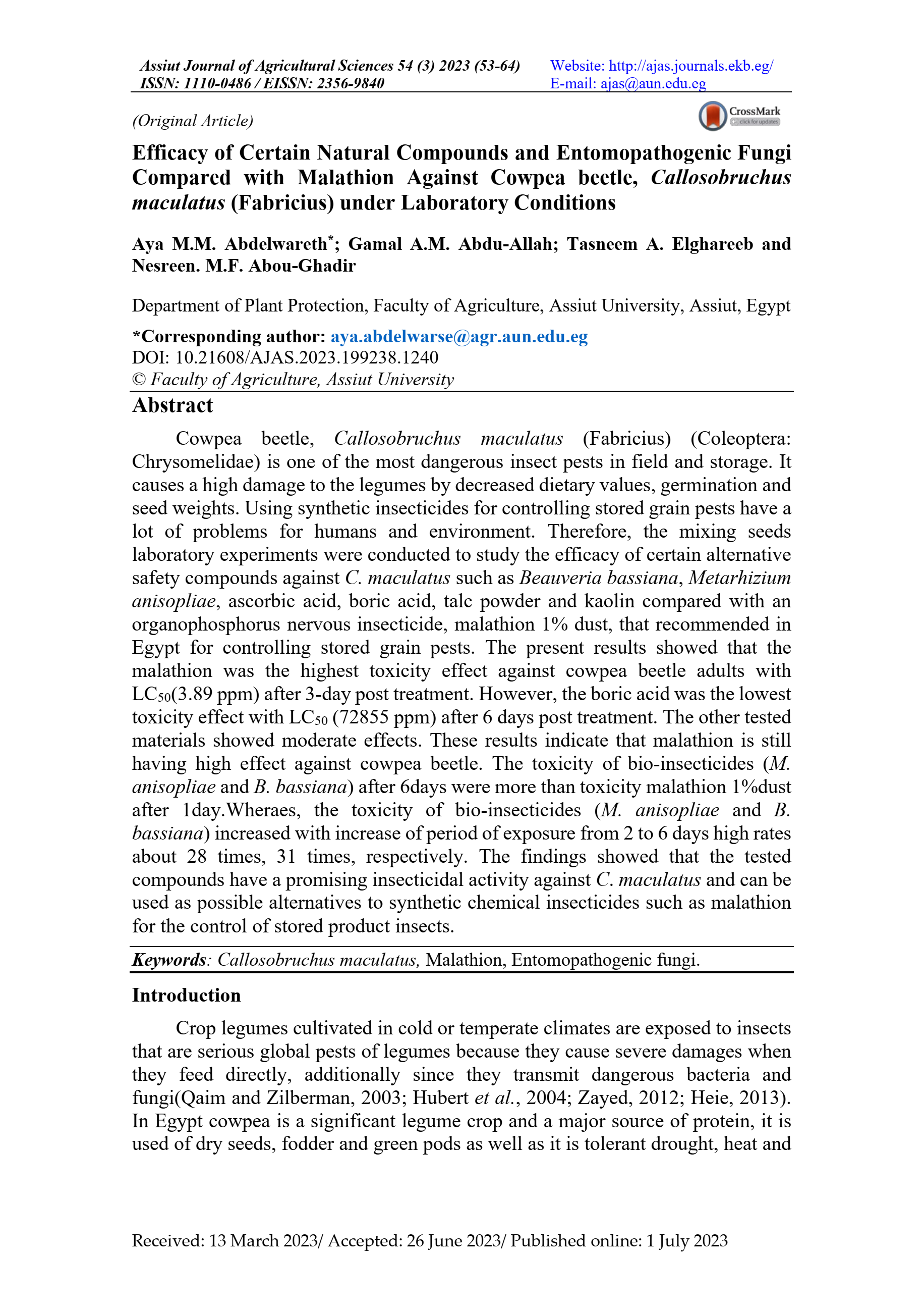 safety compounds against C. maculatus such as Beauveria bassiana, Metarhizium