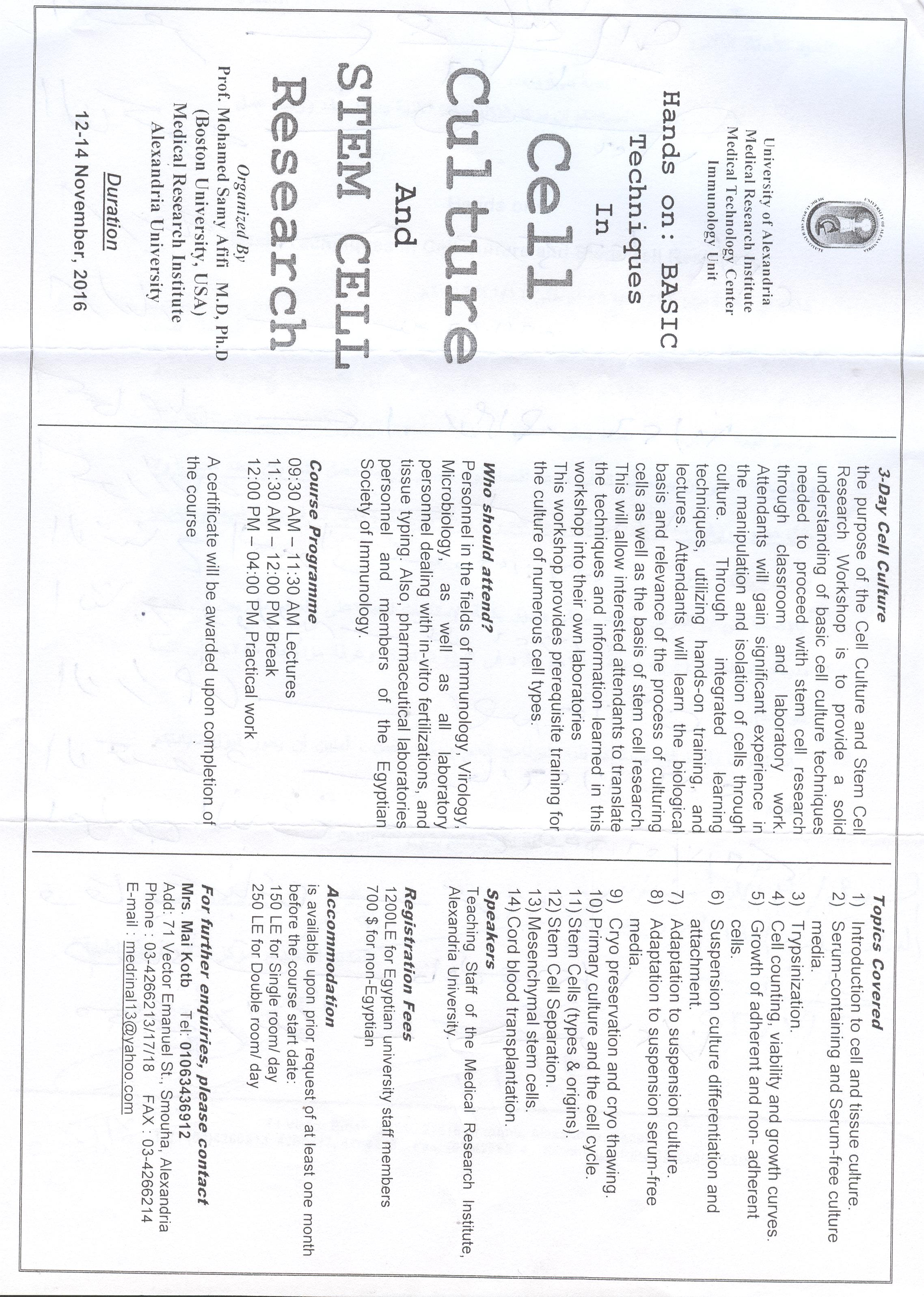 A seminar presented by Medical Research Institute of Alexandria University.