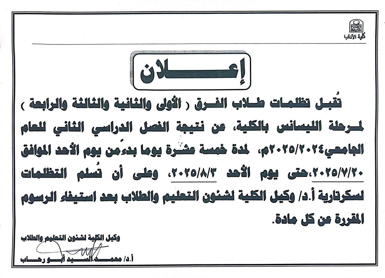 التقديم الإلكترونى للدراسات العليا بكلية الآداب