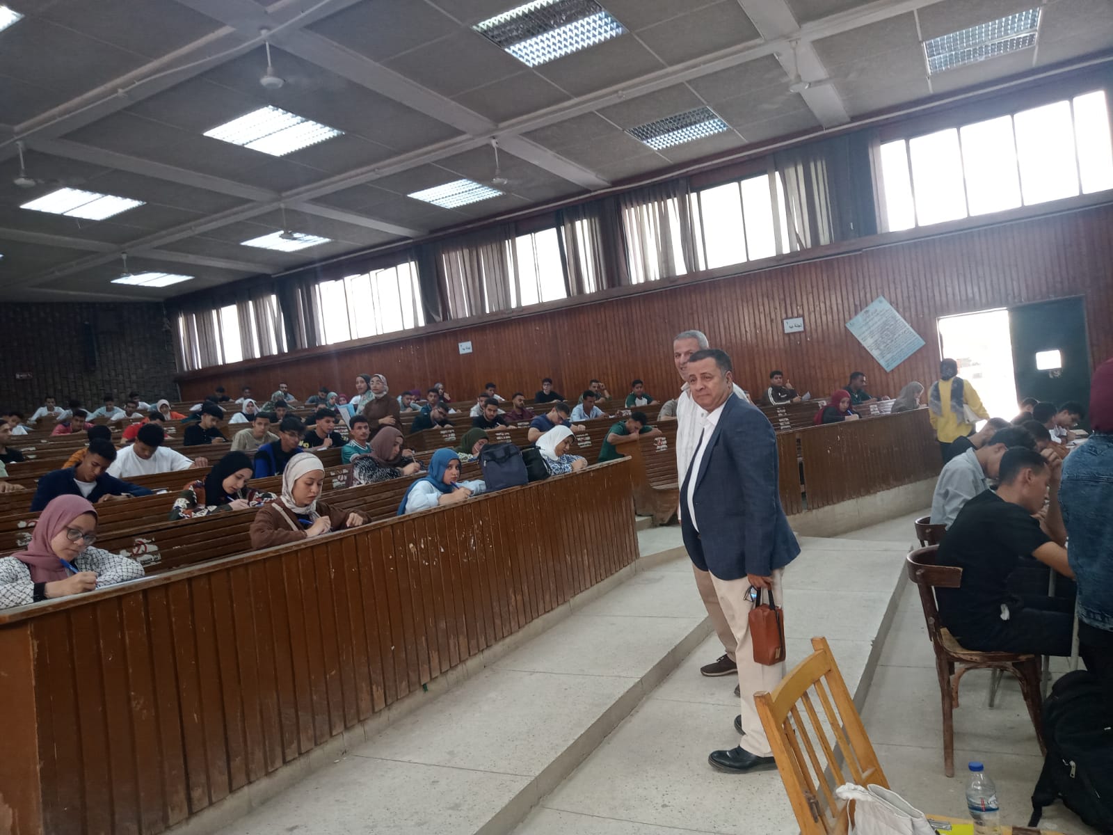 وخلال الجولة، اطمأن سيادته على حسن سير الامتحانات، وتوفر الإضاءة والتهوية المناسبة في القاعات، فضلاً عن الالتزام بالضوابط والإجراءات المنظمة للعملية الامتحانية. كما تابع انتظام أعضاء هيئة التدريس والمعاونين في تأدية مهامهم داخل اللجان، مشيدًا بجهودهم في توفير بيئة امتحانية مناسبة للطلاب.