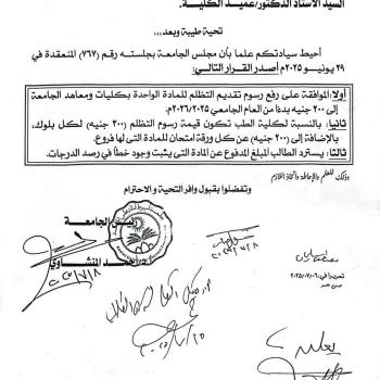مجلس كلية الاداب يوافق علي منح الباحثة / أفنان عادل محمود درجة الدكتوراه في الاداب / المكتبات والوثائق والمعلومات تخصص (تقنيات المعلومات) بتقدير عام مرتبة الشرف الأولى
