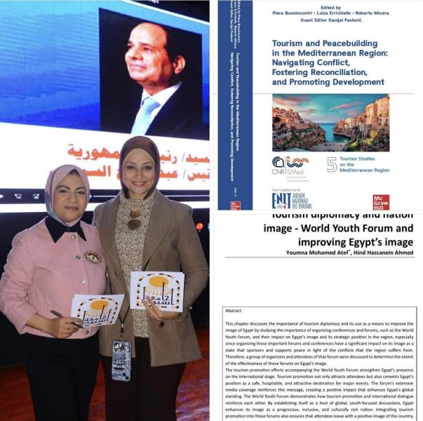 أعلنت كلية الآداب بجامعة أسيوط عن النشر الرسمي لفصل علمي جديد لكل من الدكتورة/ يمني محمد عاطف استاذ الإذاعة المساعد بقسم الاعلام والدكتورة /هند حسانين مدرس مادة الصحافة الالكترونية بقسم الإعلام والمنسق الإعلامي للكلية، ضمن المجلد الخامس من سلسلة «دراسات السياحة في منطقة البحر المتوسط» الصادرة عن معهد الدراسات المتوسطية (CNR-ISMed) وبدار نشر «ماكجرو هيل» بمدينة ميلانو الإيطالية. ويحمل الفصل عنوان "الدبلوماسية السياحية وصورة الدولة – منتدى شباب العالم وسبل تعزيز صورة مصر" ليرسخ بذلك الحضور الأكاديمي المصري في حوارات دولية حول دور السياحة كأداة للسلام والتنمية المستدامة.
