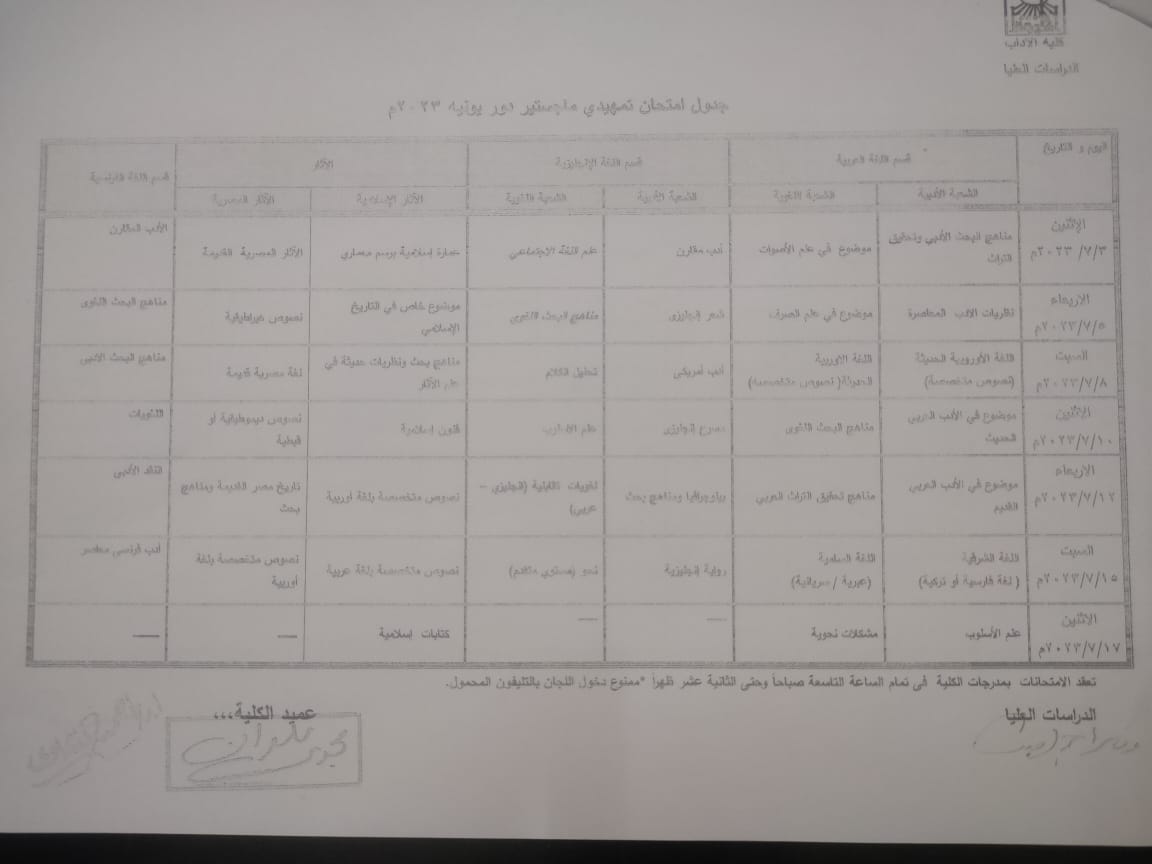 مجلس الكلية يوافق علي منح الباحثة دينه جادالكريم عبده درجةالماجستير في الاداب فلسفة تخصص فلسفة اسلامية بتقدير عام ممتاز