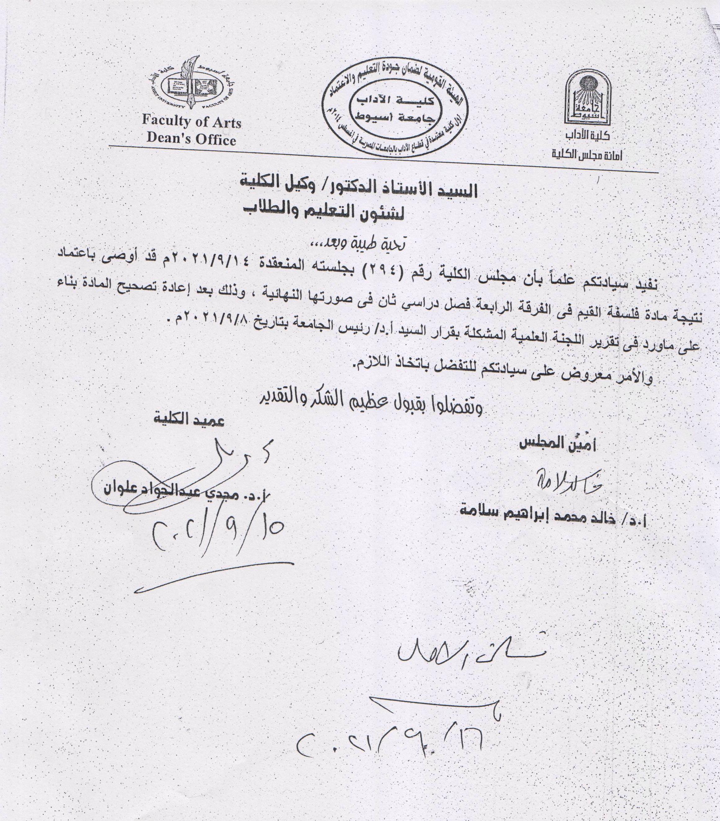 يتقدم ا.د. عميد الكلية بخالص التهنئة للاسنتذ الدكتور محمود علي عبد المعطي لتعيين سيادته وكيلا لكلية الاداب لشئون خدمة المجتمع وتنمية البيئة متمنيا لسيادته التوفيق والسداد ودوام التقدم والرقي