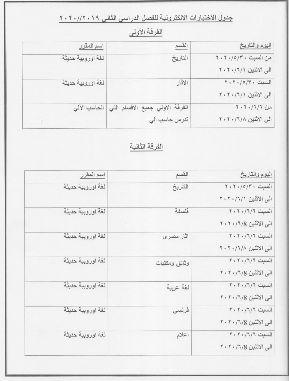 Electronic exam schedules for first, second and third team students 21 May 2020 Electronic exam schedules for first, second and third team students