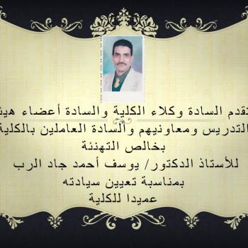 تهنئة للاستاذ الدكتور يوسف جاد الرب لتعيين سيادته عميدا للكلية