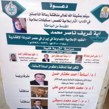 جلسة مناقشة ماجستير بقسم الدراسات الاسلامية للباحث مصطفي محمد خميس
