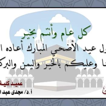 تهنئة ا.د. عميد الكلية بمناسبة حلةل عيد الاضحي المبارك