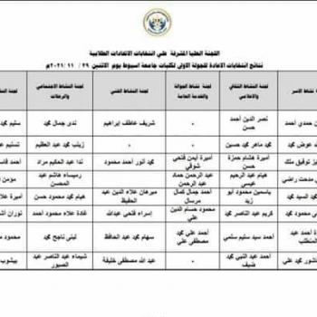 اسماء الطلاب الفائزين في انتخابات الاتحادات الطلابية بكلية الآداب