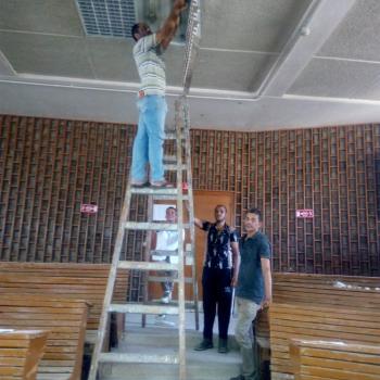 ادارة الكلية تنتهي من عملية احلال وتجديد اعمال الكهرباء بالمدرجات والقاعات كما قام قطاع خدمة المجتمع وتنمية البيئة بمعاينة ومتابعة صيانة المسطحات الخضراء بالكلية