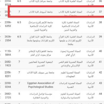 حصول المجلة العلمية على تقييم ٧ في التقييم النهائي السنوي المجلات العلمية الأكاديمية على مستوى الجامعات المصرية