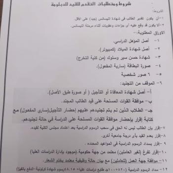 Conditions and requirements for applying for registration for a diploma degree