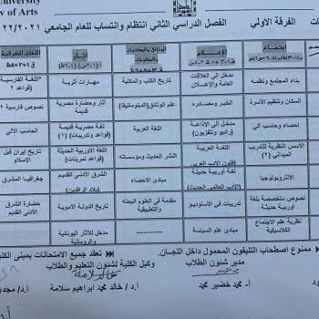 Schedule of exams for the second semester 2021-2022 First Division