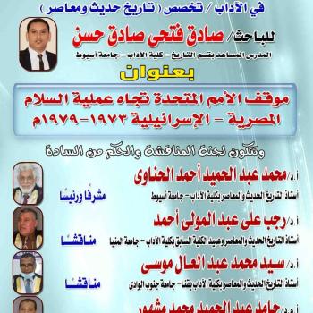 Discussion session of a doctoral thesis by researcher Sadiq Fathi Sadiq Hassan devoted contemporary history entitled The Position of the United Nations towards the Egyptian-Israeli peace process 1973-1979
