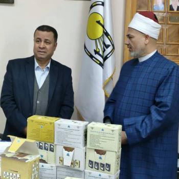 Sheikh Assem al-Qubaisi, undersecretary of the Ministry of Endowments in Assiut, dedicates a series of books at the Ministry of Endowments to The Dean of the Faculty of Arts, Dr. Magdi Alwan.