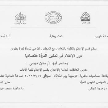 Seminar on the role of media in women's economic Empowerment lecture by Dr. Hanan Mousa the teacher in the media department