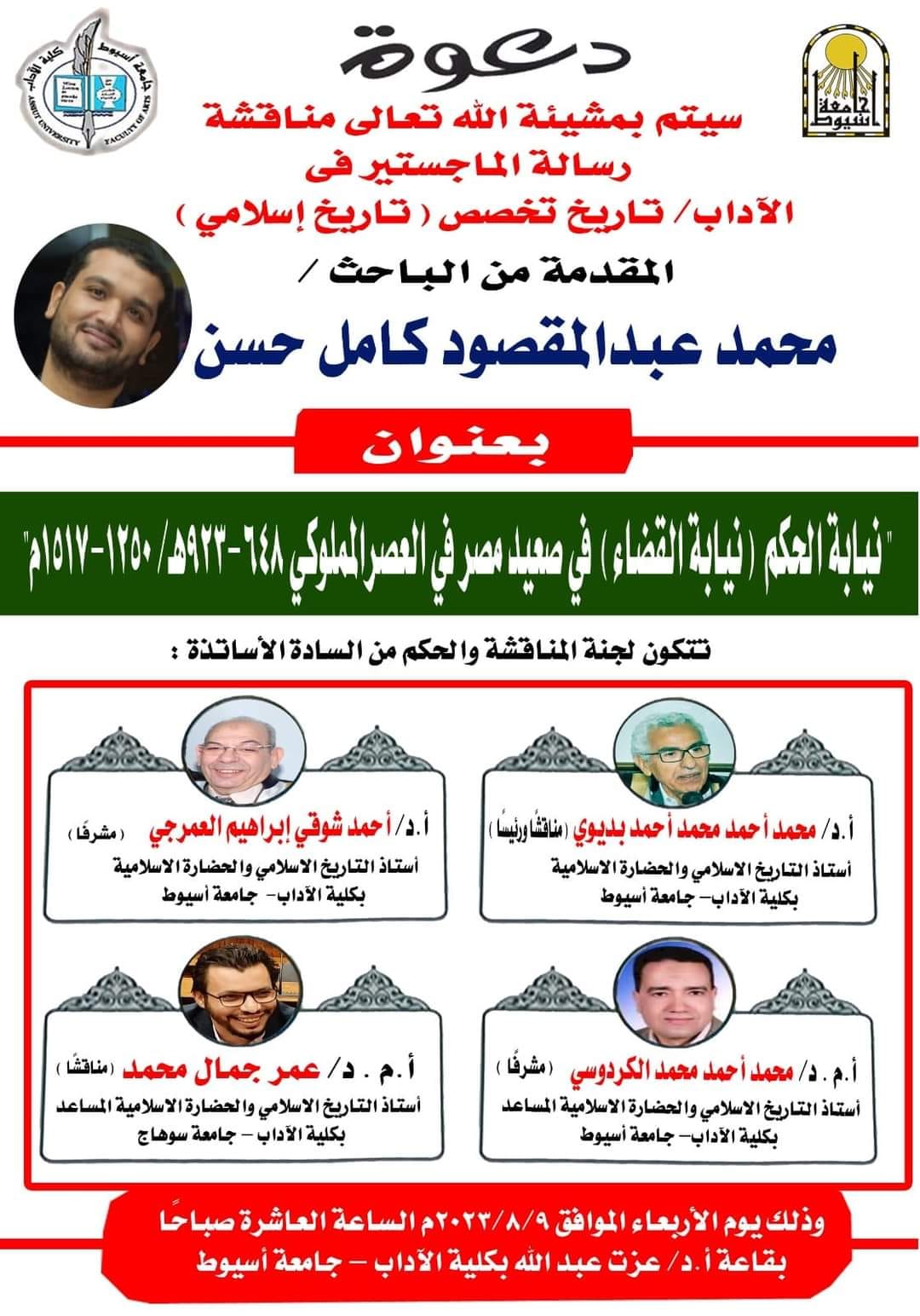 A master's thesis discussion session in history for researcher Mohamed Abdel-Maqsoud Kamel